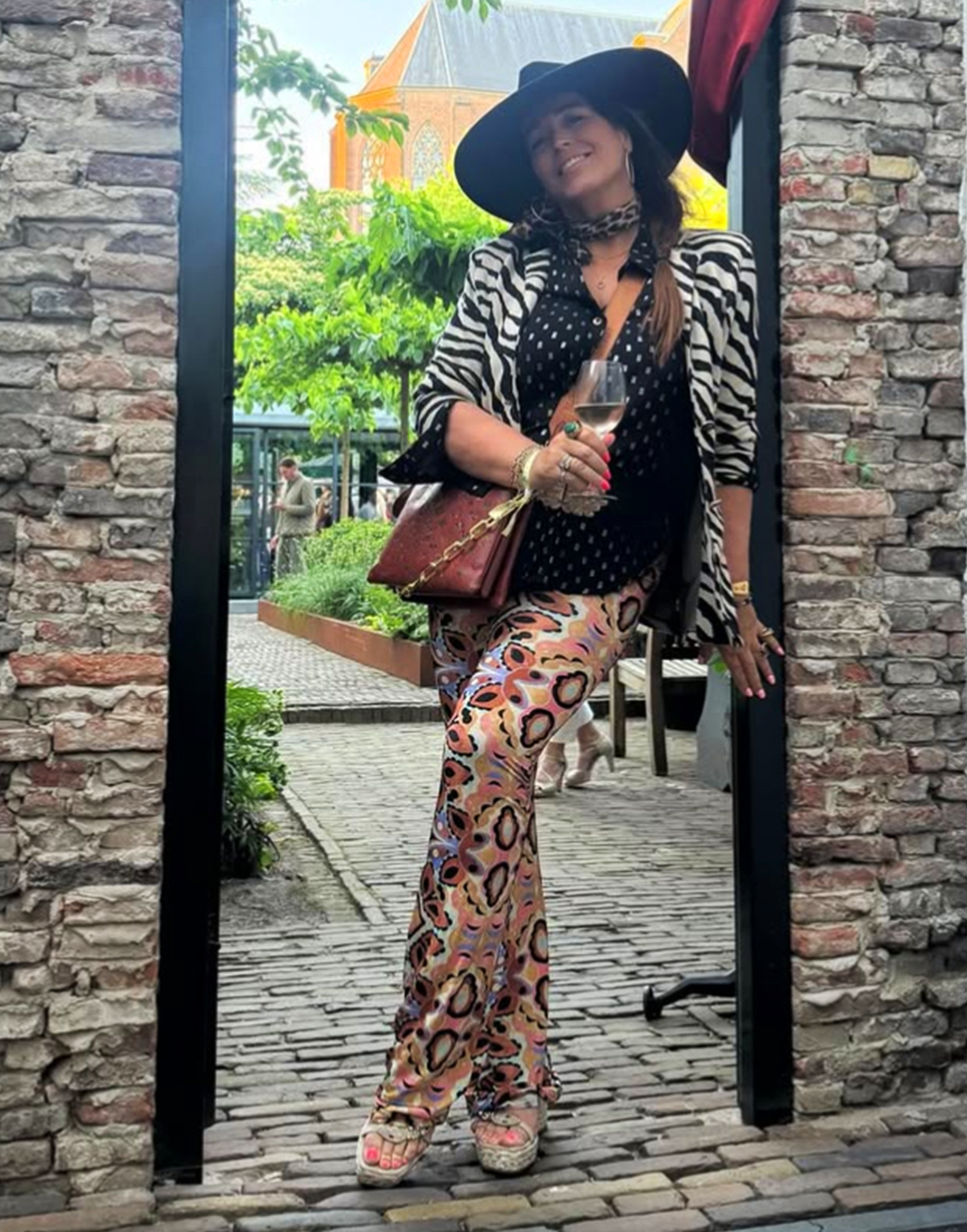 The Flare Riu Nude Pants are beautiful pants with straight legs. The pants have a beautiful print and color combination with fresh summer colors. Easy to combine with a white top or the matching Pauline Riu Nude top.