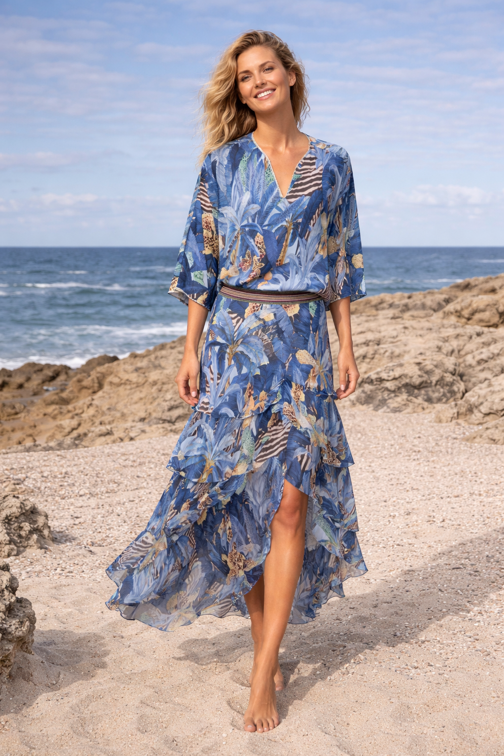 The lightweight, flowing fabric feels comfortable against your skin and moves elegantly with you. Ideal for dressing up with slim-fitting trousers for a bold look, or casually paired with denim for a more relaxed look. Also to combine with the Frederique Blue Iris Skirt.