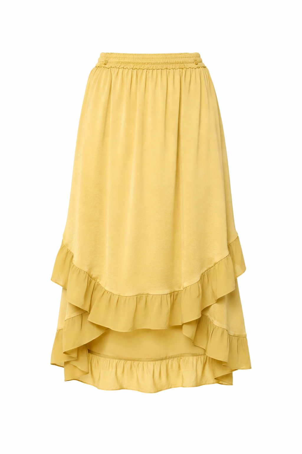 De Amaya Yellow Satin Rok is vervaardigd van hoogwaardig satijn voor een luxueuze uitstraling.