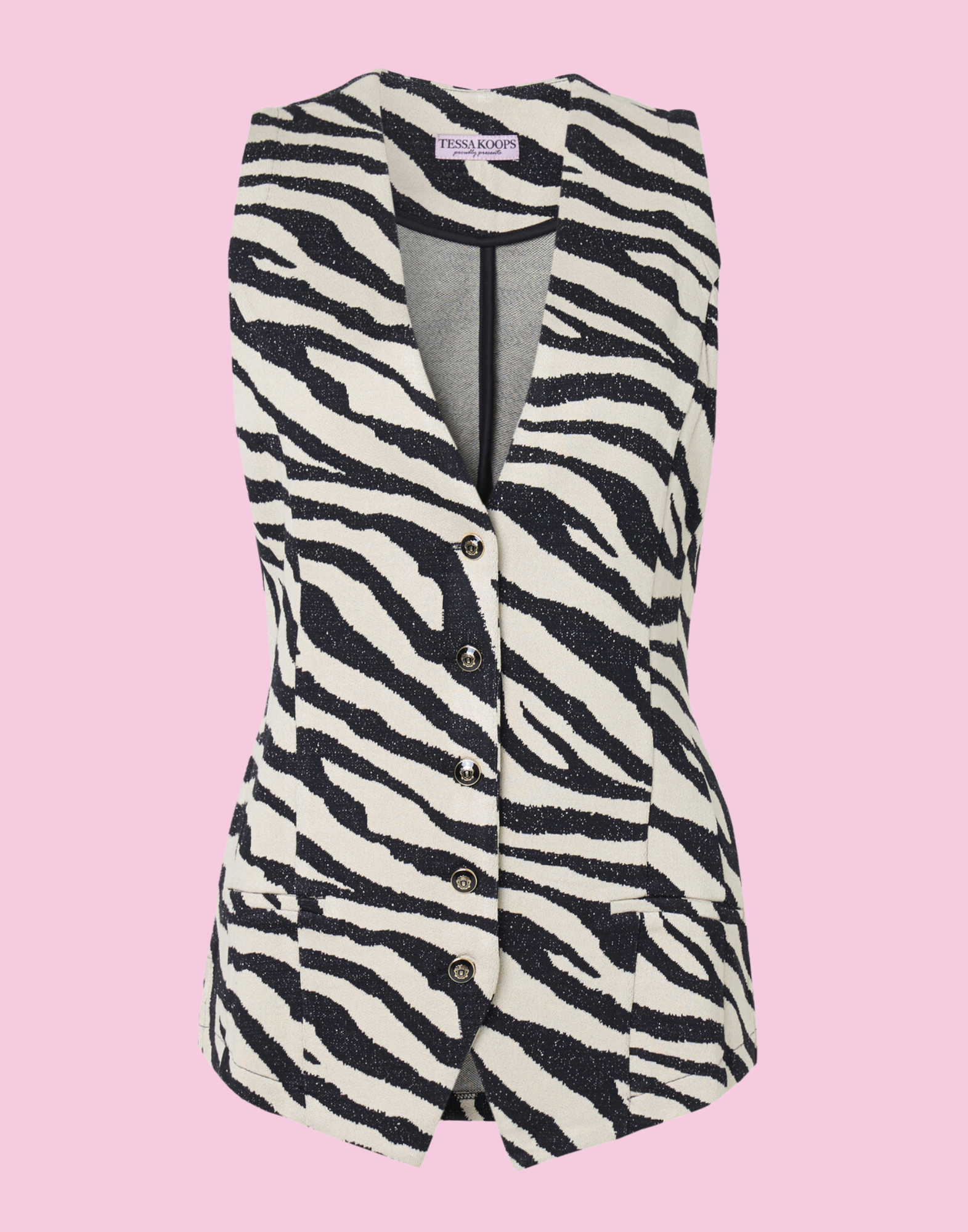 De Danka Cebra Gilet heeft een prachtige print en kleuren combinatie. De gilet heeft 5 brons-achtige knopen aan de voorkant om de gilet dicht te maken en 2 kleine steekzakken aan de onderzijde van de voorkant.