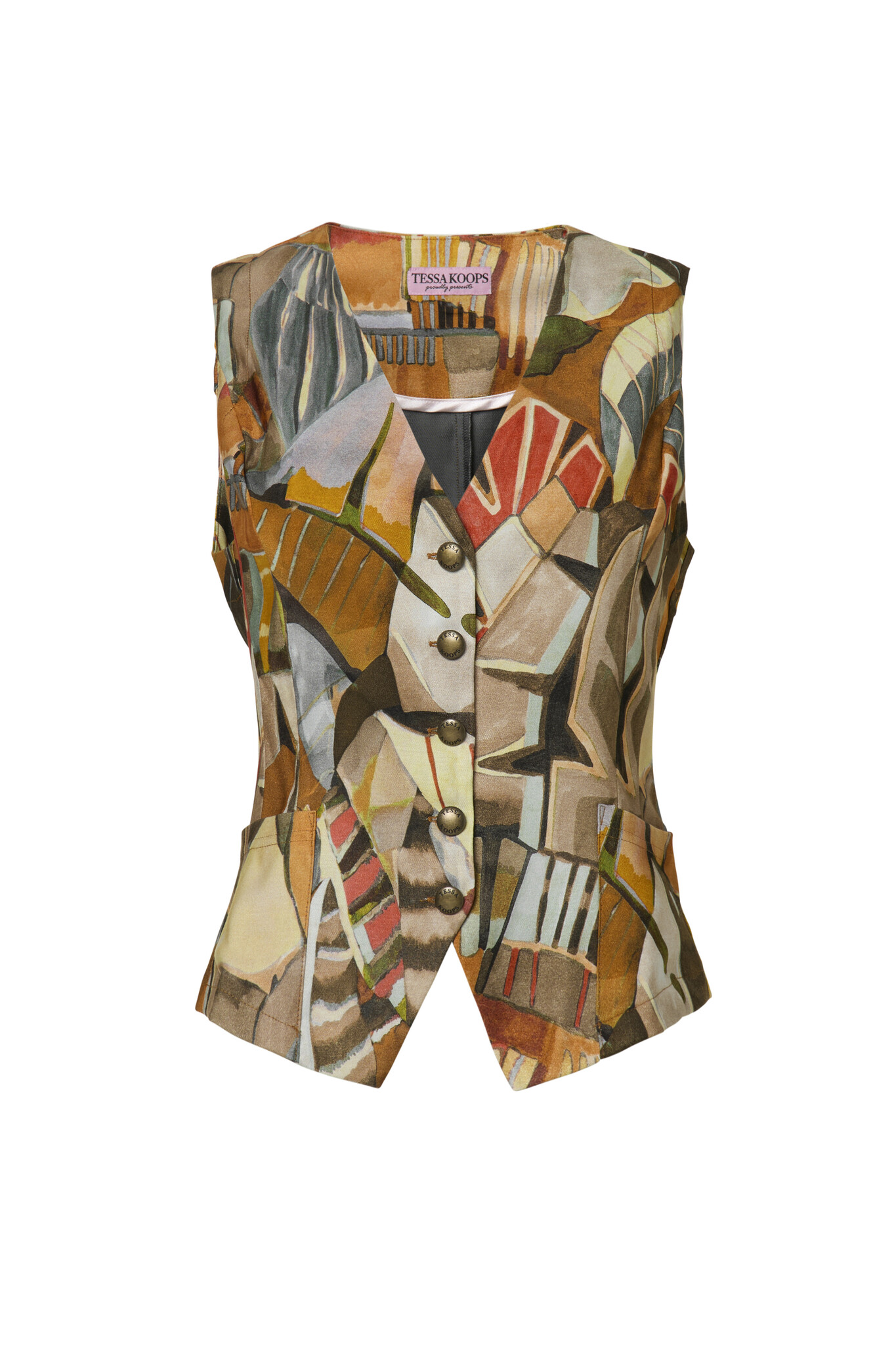 De Denise Andorra Gilet heeft een prachtige print en kleuren combinatie. De gilet heeft 5 bronze knopen aan de voorkant om de gilet dicht te maken en 2 kleine steekzakken aan de onderzijde van de voorkant. Lees meer