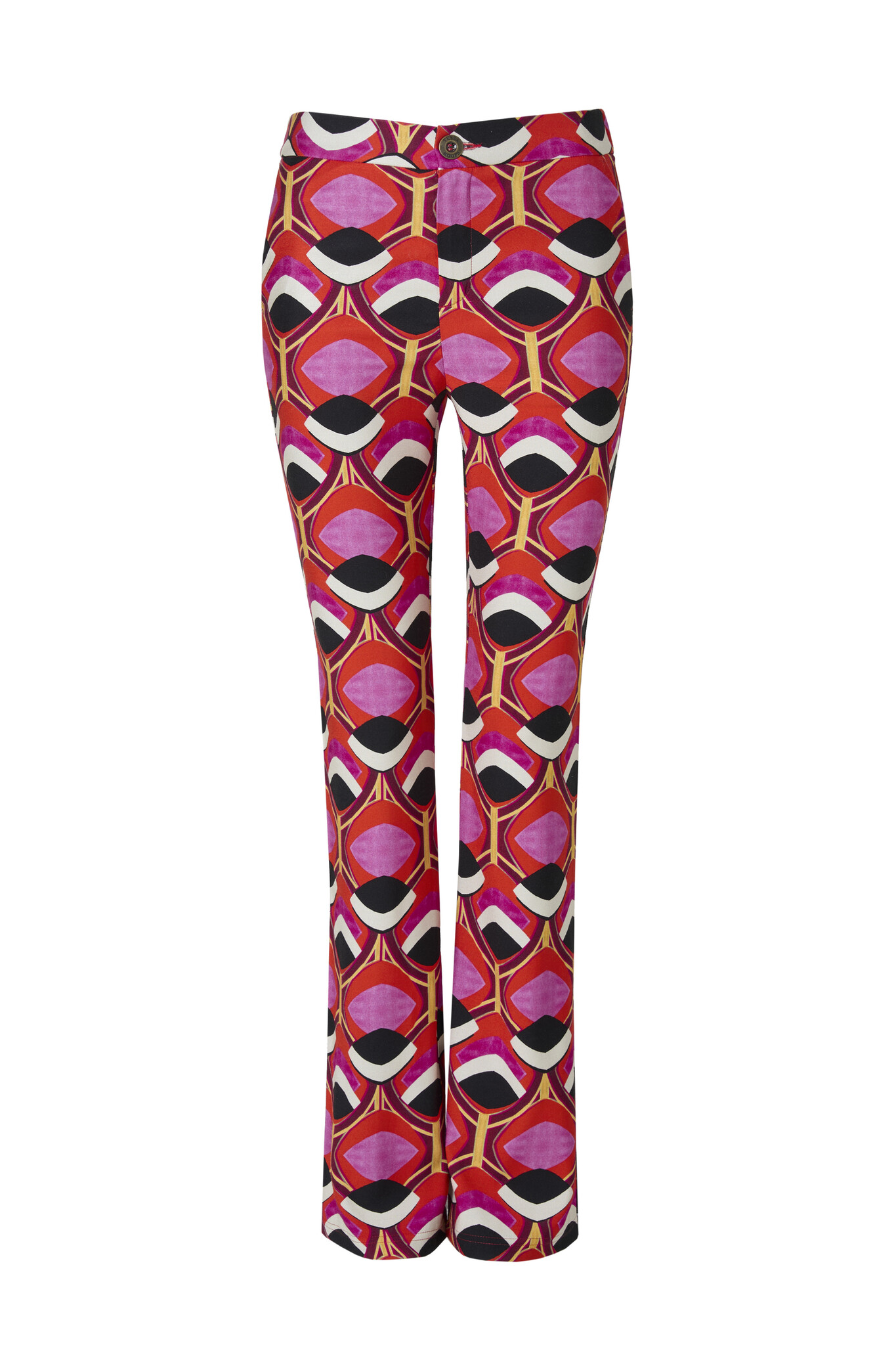 De Eva Flare Caldaron Broek is een mooie zacht aanvoelende broek met wijd uitlopende pijpen. De broek heeft een rits en twee steekzakken aan de voorzijde en een knoop om de broek goed te kunnen sluiten. Te combineren met de Janna Caldaron Blazer.