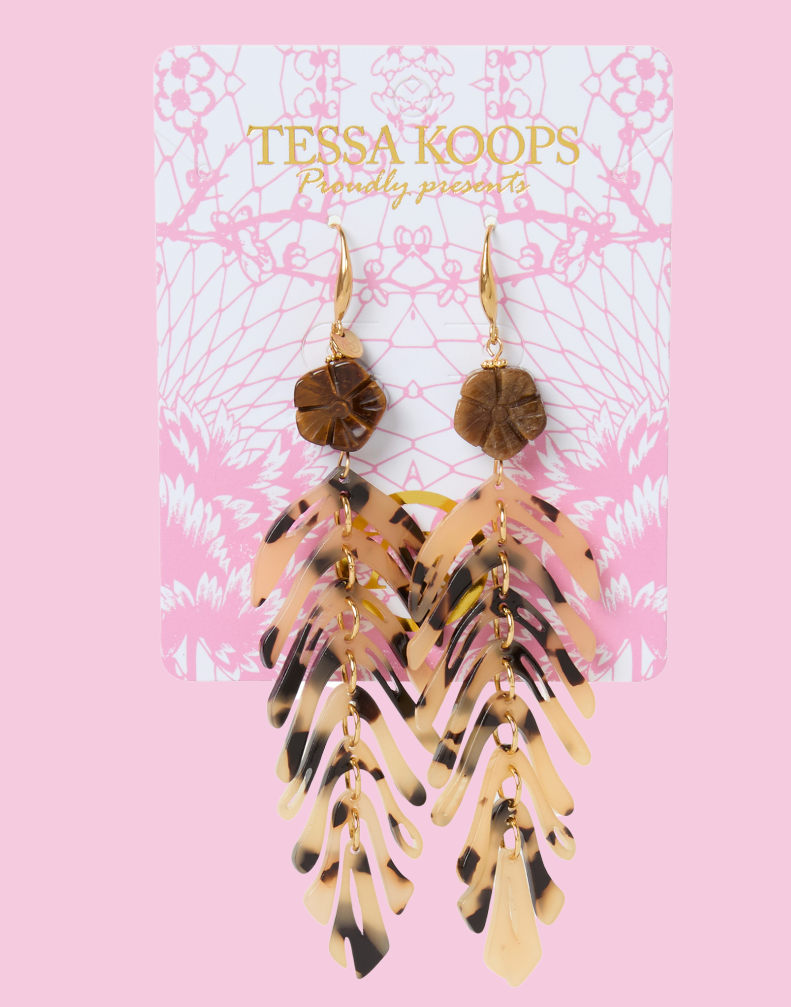 Voeg een vleugje elegantie én speelsheid toe aan je look met de Feather Tiger Eye Oorbellen van Tessa Koops Fashion Designer.