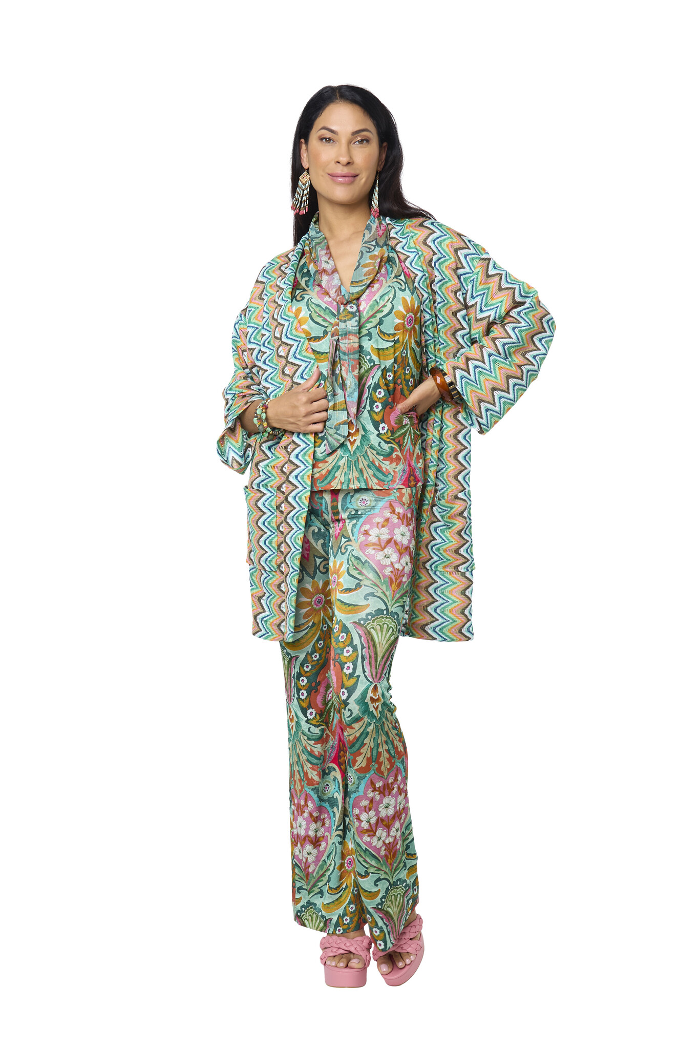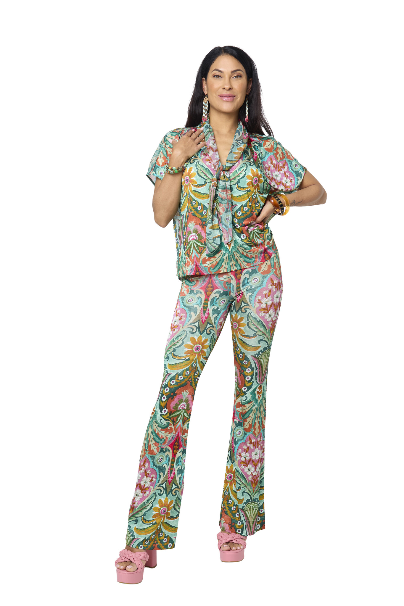 De Flare Guapa Broek is een mooie broek met rechte pijpen. De broek heeft een mooie print en kleuren combinatie met frisse zomerse kleuren. Makkelijk te combineren met een witte top of de bijpassende Tanny Guapa top.