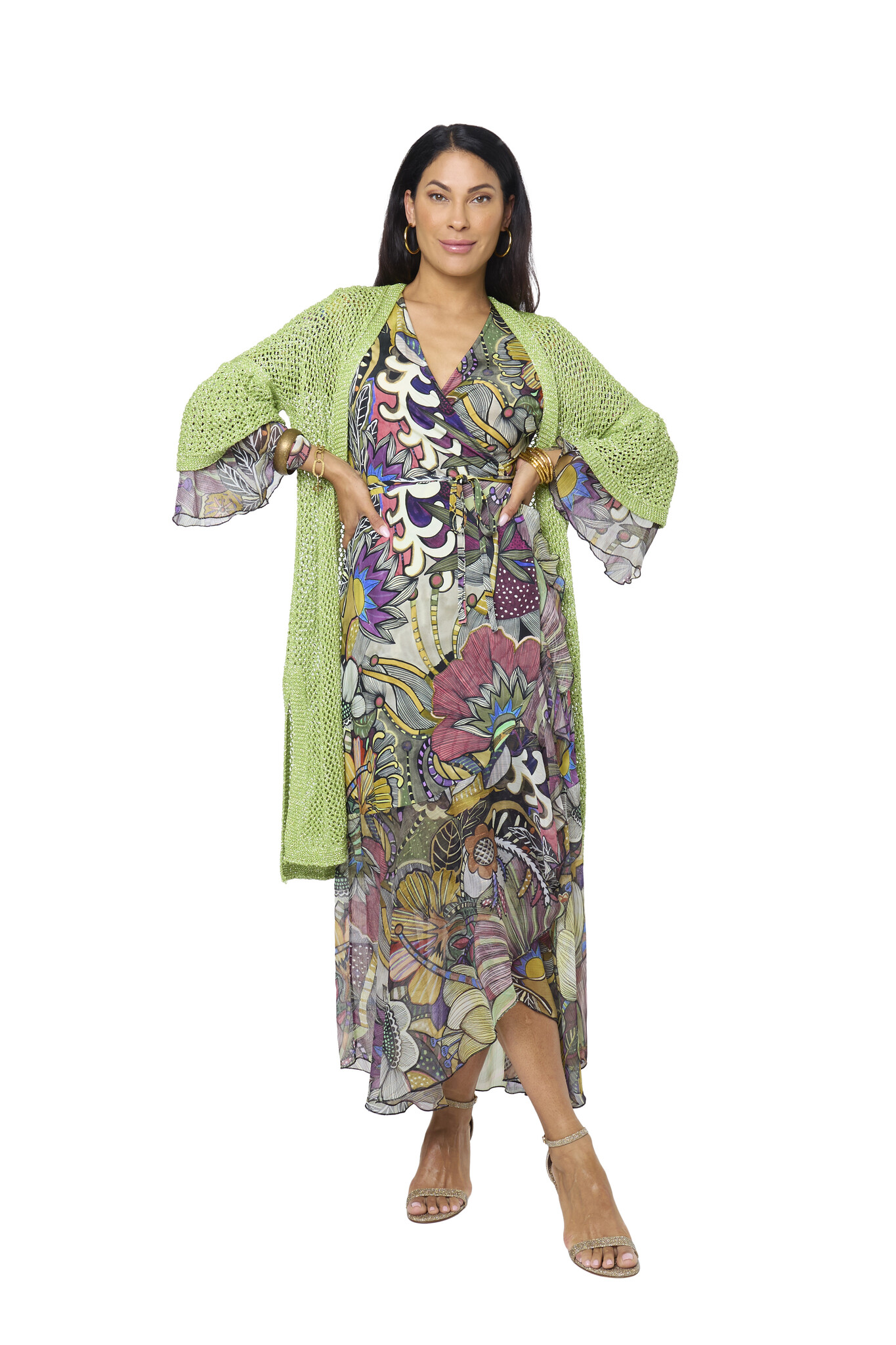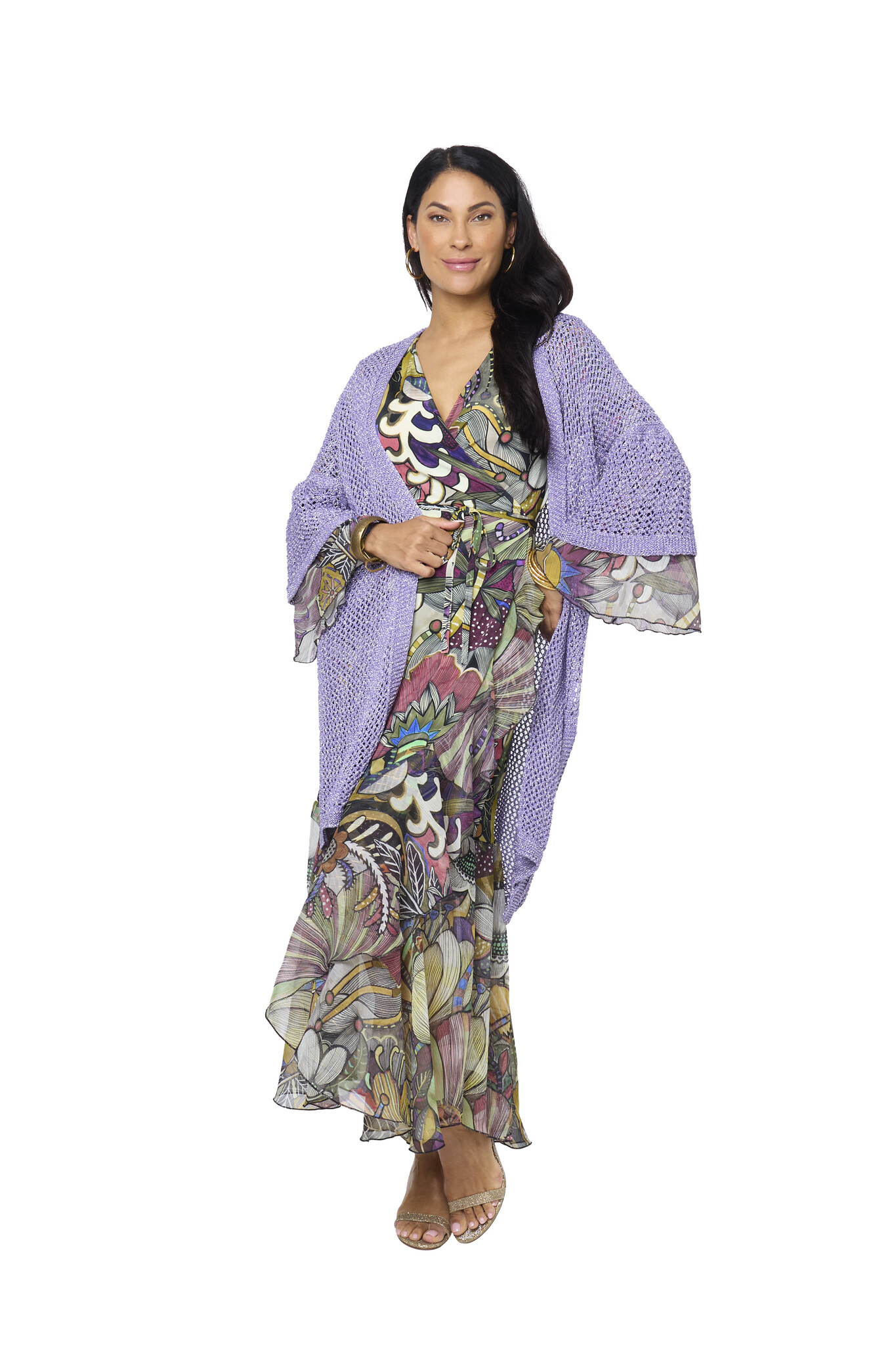 De Indira Pomo Jurk is een prachtige lange wikkeljurk met een diepe V-hals. Taille wordt geaccentueerd door het omslageffect. De wijd uitlopende mouwen en de onderkant van de jurk hebben aan de uiteinde ruches. Lees meer