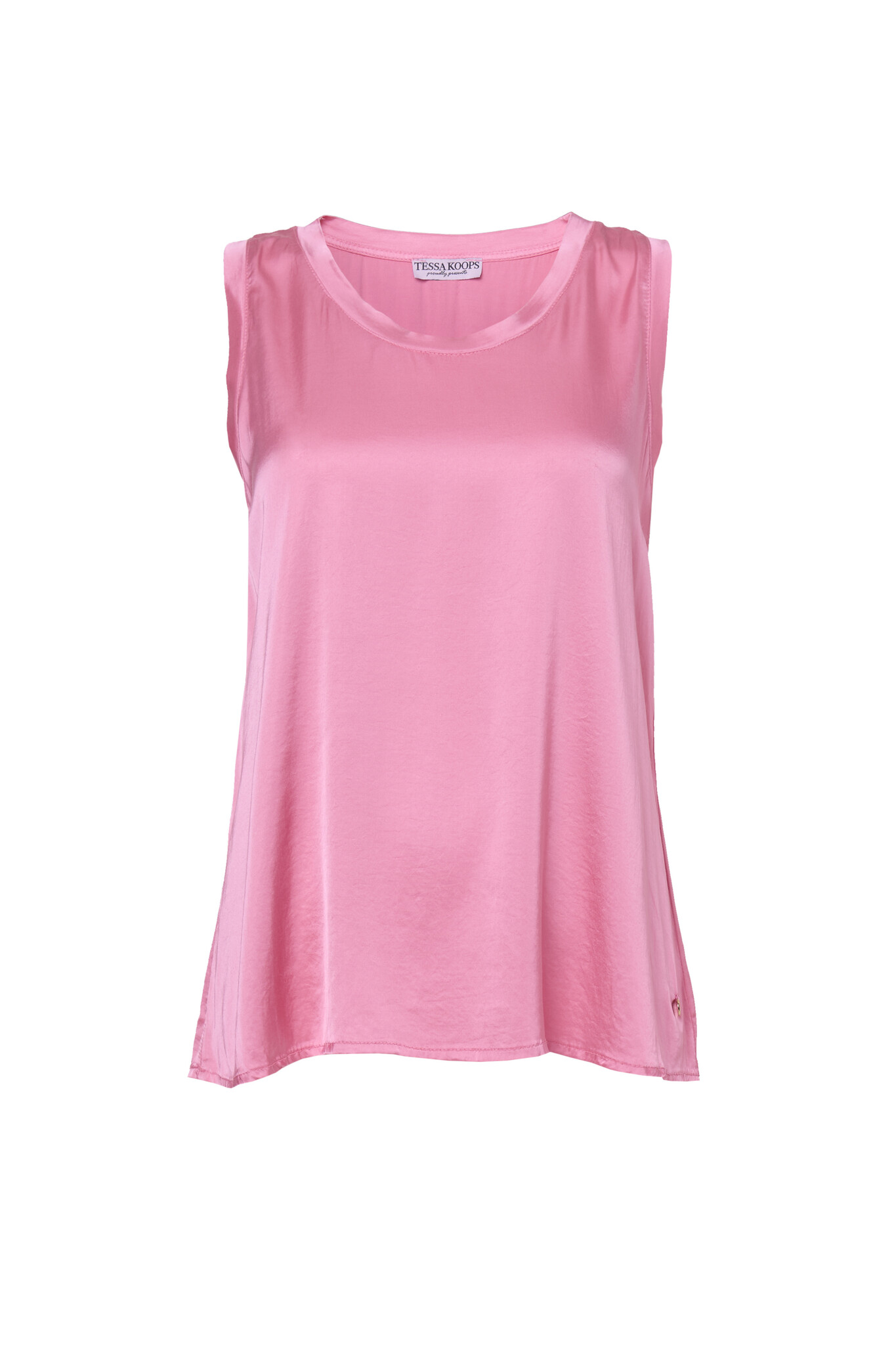 De Isola Satin Oliander Top is een mouwloze top met een ronde hals. De top is gemaakt van een heerlijke zachte stretch viscose en heeft een prachtige afwerking. De top is kan gedragen worden op een leuke spijkerbroek, maar van ook gecombineerd worden met de Marlene Satin Oliander broek.