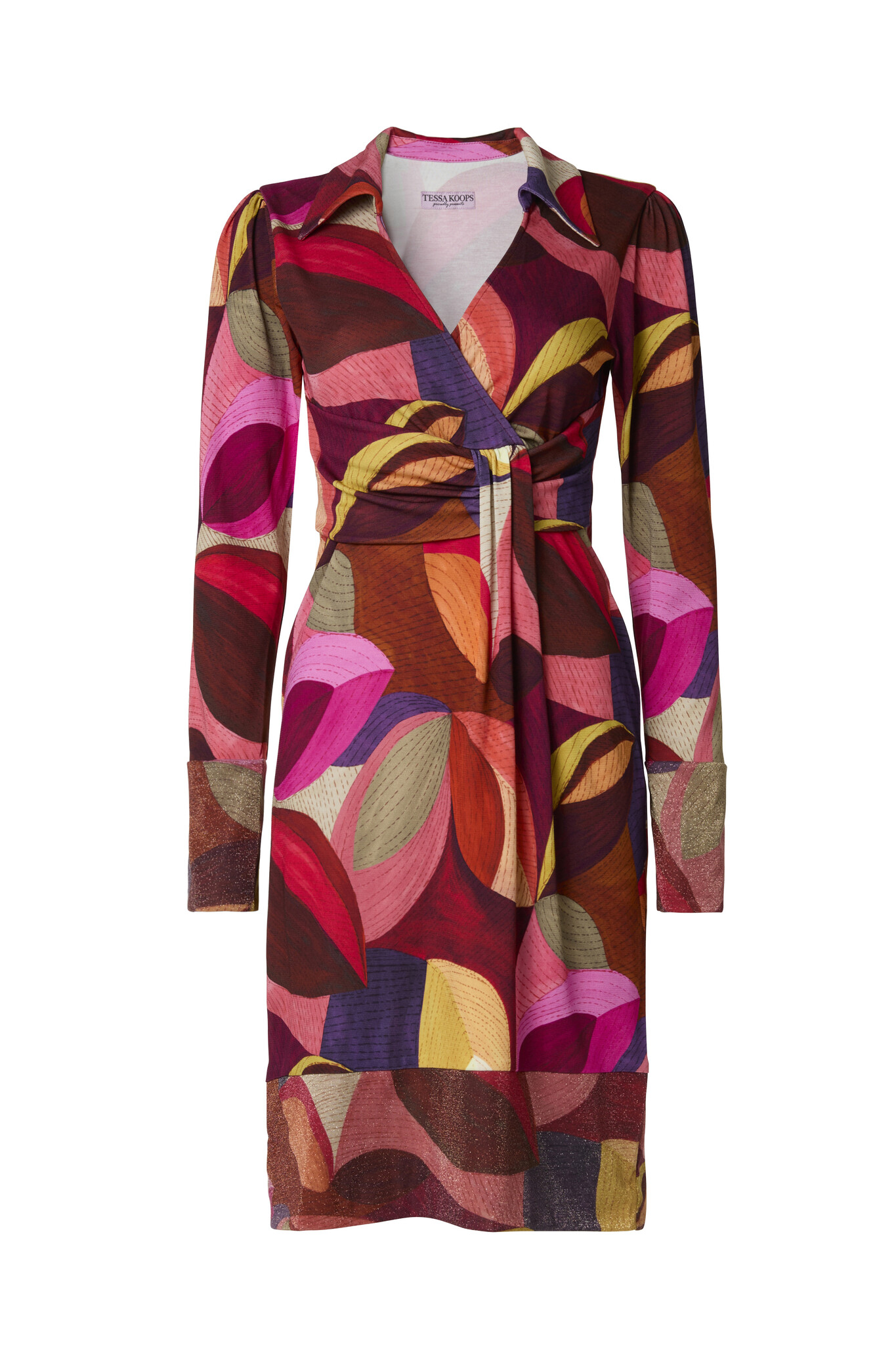 Deze Jacqueline Campello Jurk heeft een mooie V-hals met een grote kraag en in de taille een ceintuur om de jurk te tailleren. De onderkant van de mouwen en de jurk zijn afgezet met een prachtige strook stof in een andere print- en kleuren combinatie. Lees meer