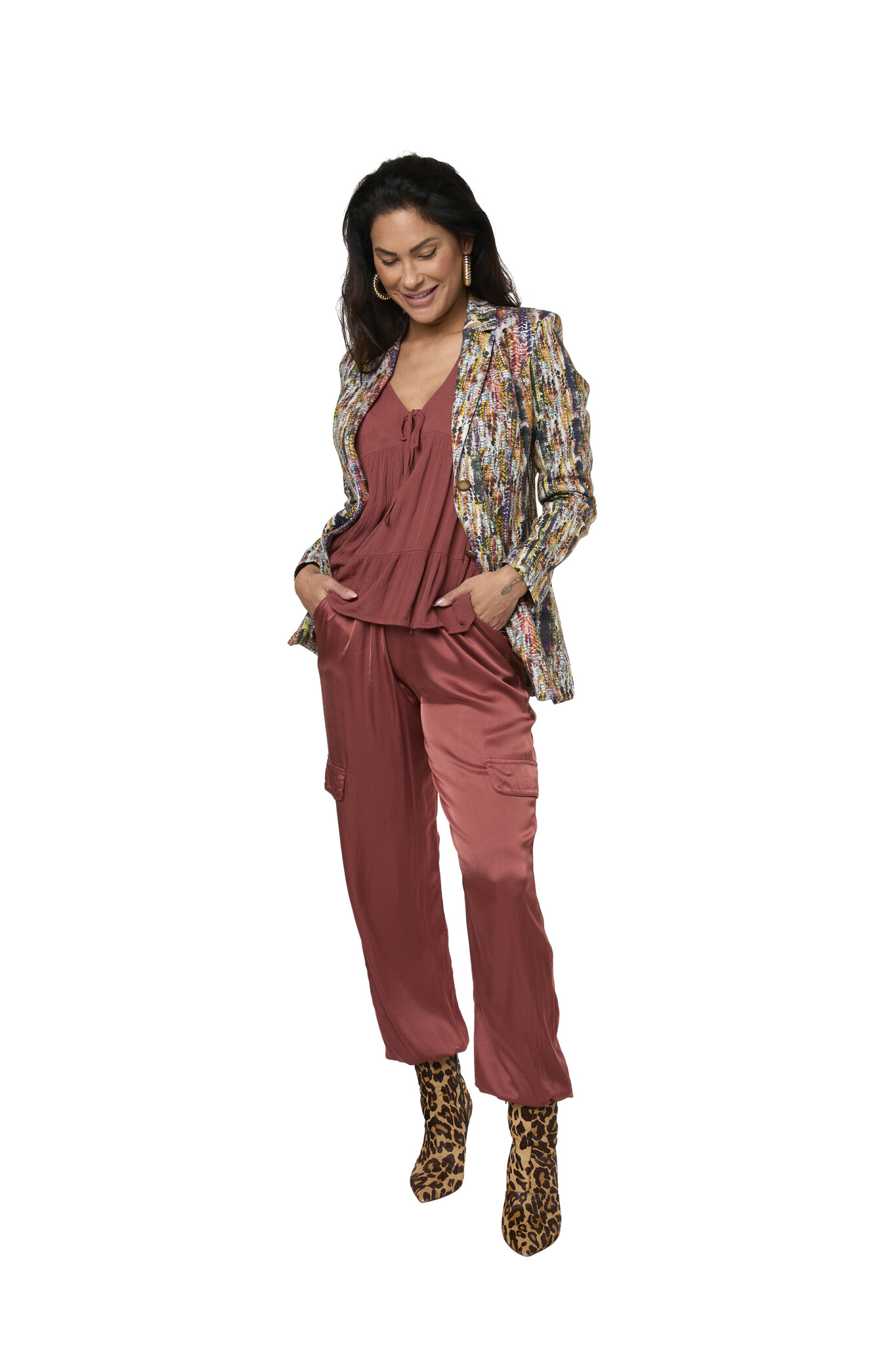 De Janna Melange Blazer is gemaakt van zachte stretch jersey en draagt daardoor super comfortabel. Perfect om te dragen op een bijpassende Eva Flare Melange broek, maar ook mooi op een jeans of uni broek. Het model heeft een makkelijke pasvorm. Het model heeft een slank silhouet en makkelijke pasvorm door de stretch jersey. De Janna Melange Blazer heeft twee zakken en twee knopen als sluiting. De blazer is mooi getailleerd en heeft lange mouwen.