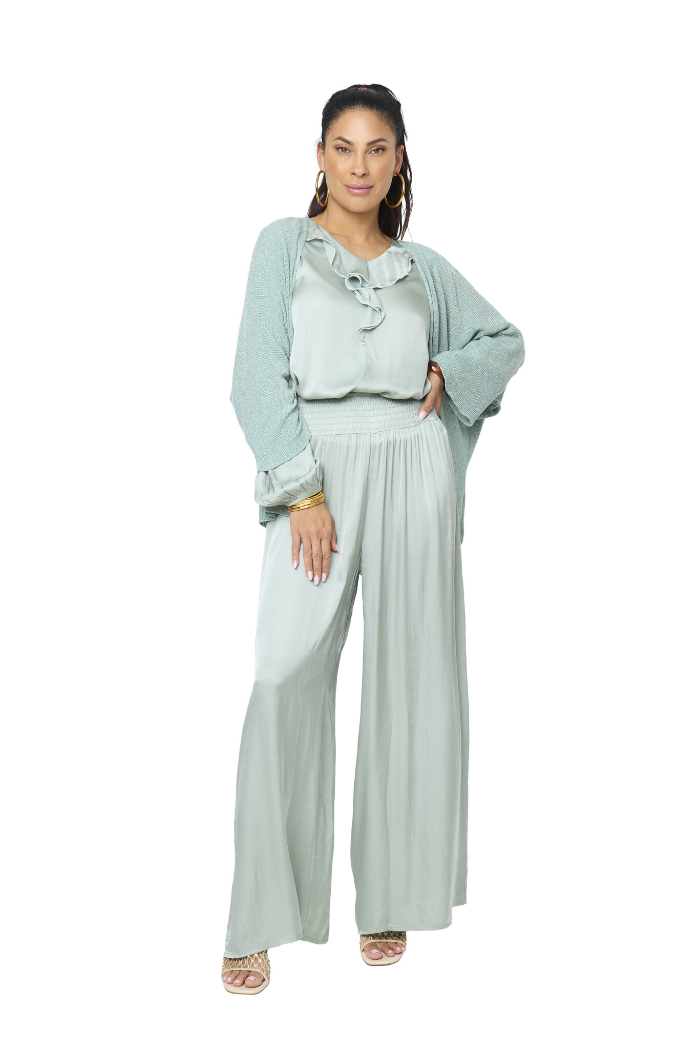 MARLENE SATIN MINT BROEK