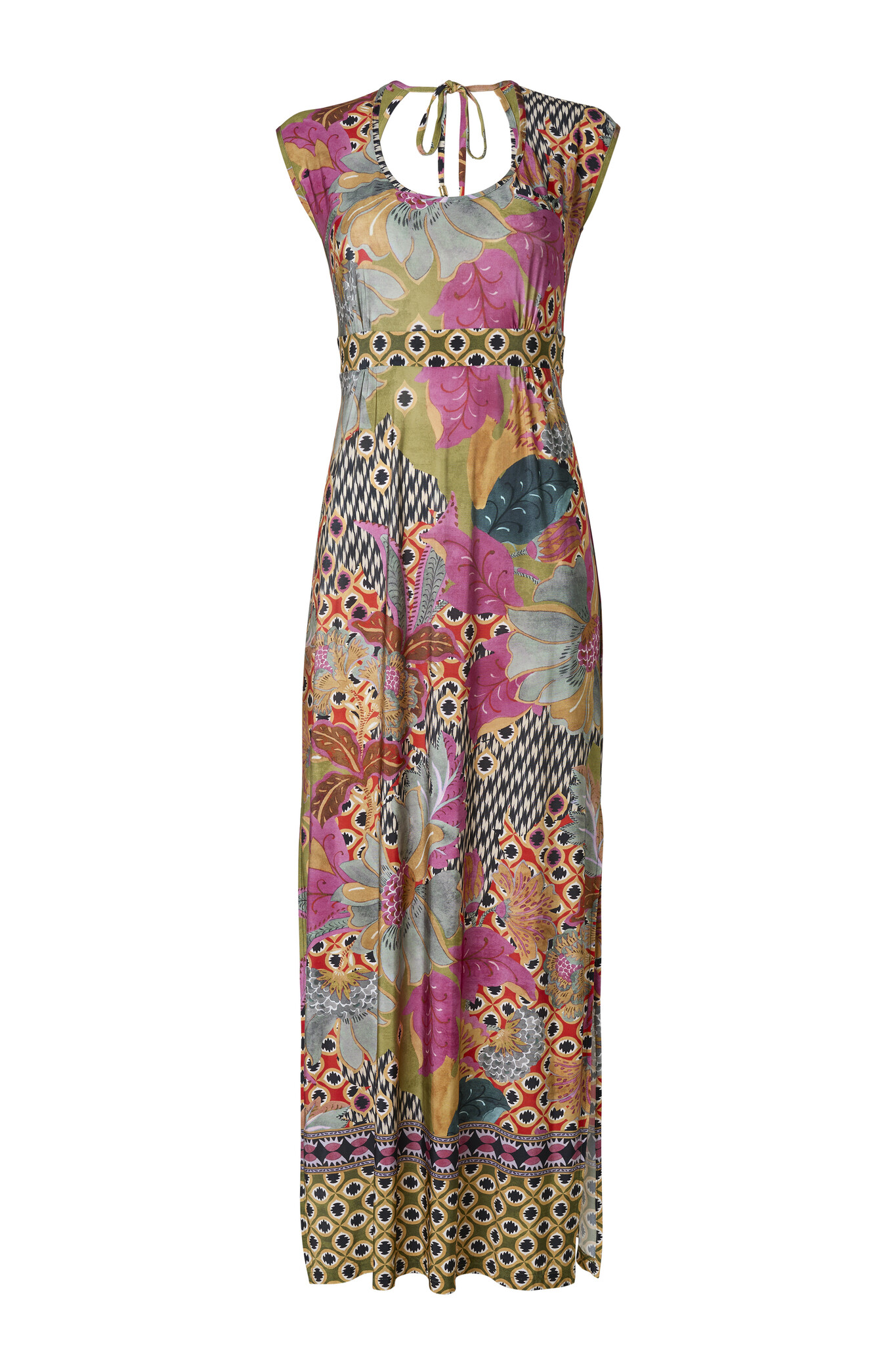 De Rony Primavera Jurk is een mouwloze lange jurk gemaakt van een zachte stof. De jurk heeft een mooie ronde hals, een split aan de zijkant, een tailleband voor een flatterend silhouet. Een extra detail is de striksluiting in de nek. Lees meer