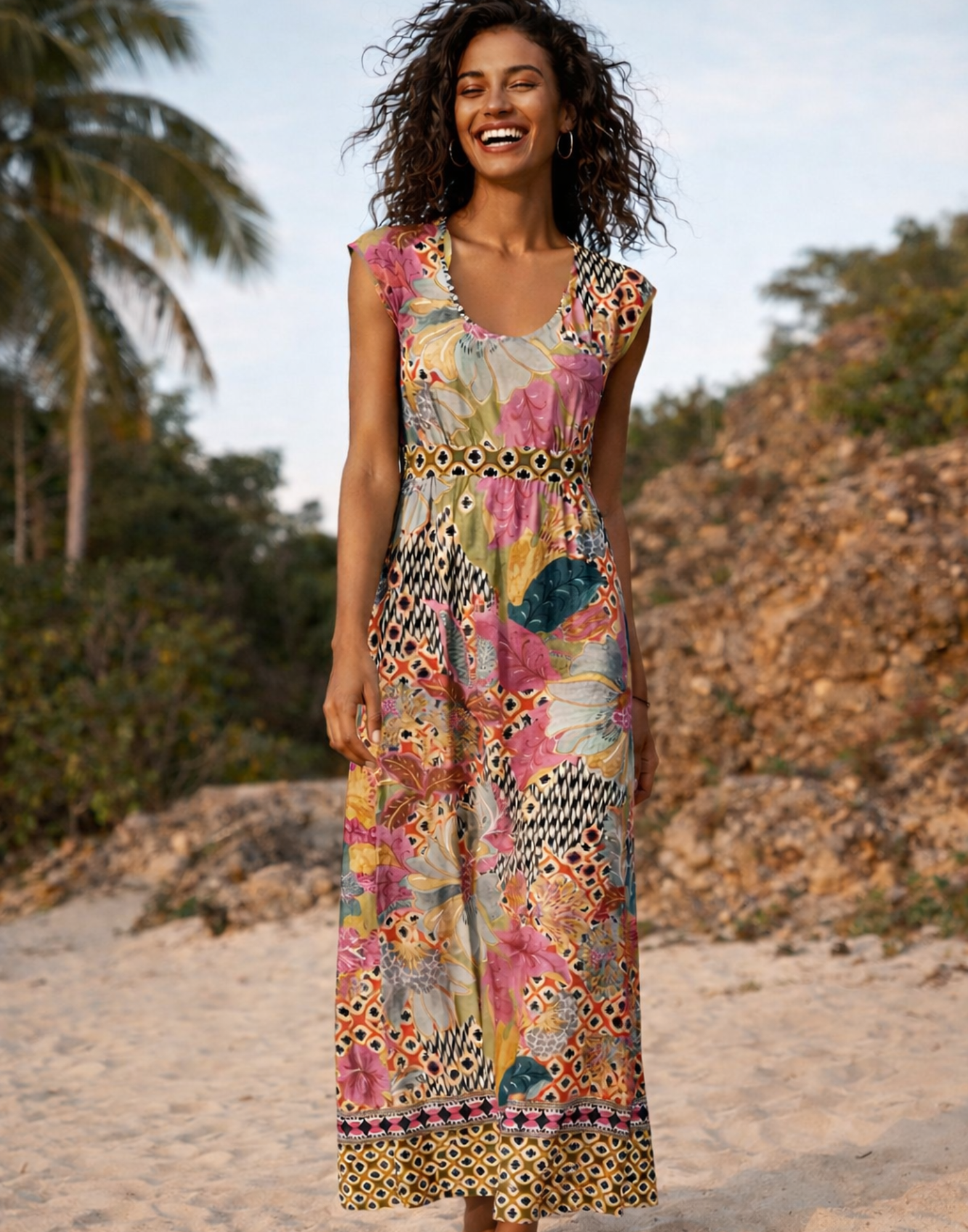 De Rony Primavera Jurk is een mouwloze lange jurk gemaakt van een zachte stof. De jurk heeft een mooie ronde hals, een split aan de beide zijkanten, een tailleband voor een flatterend silhouet. Een extra detail is de striksluiting in de nek. Lees meer