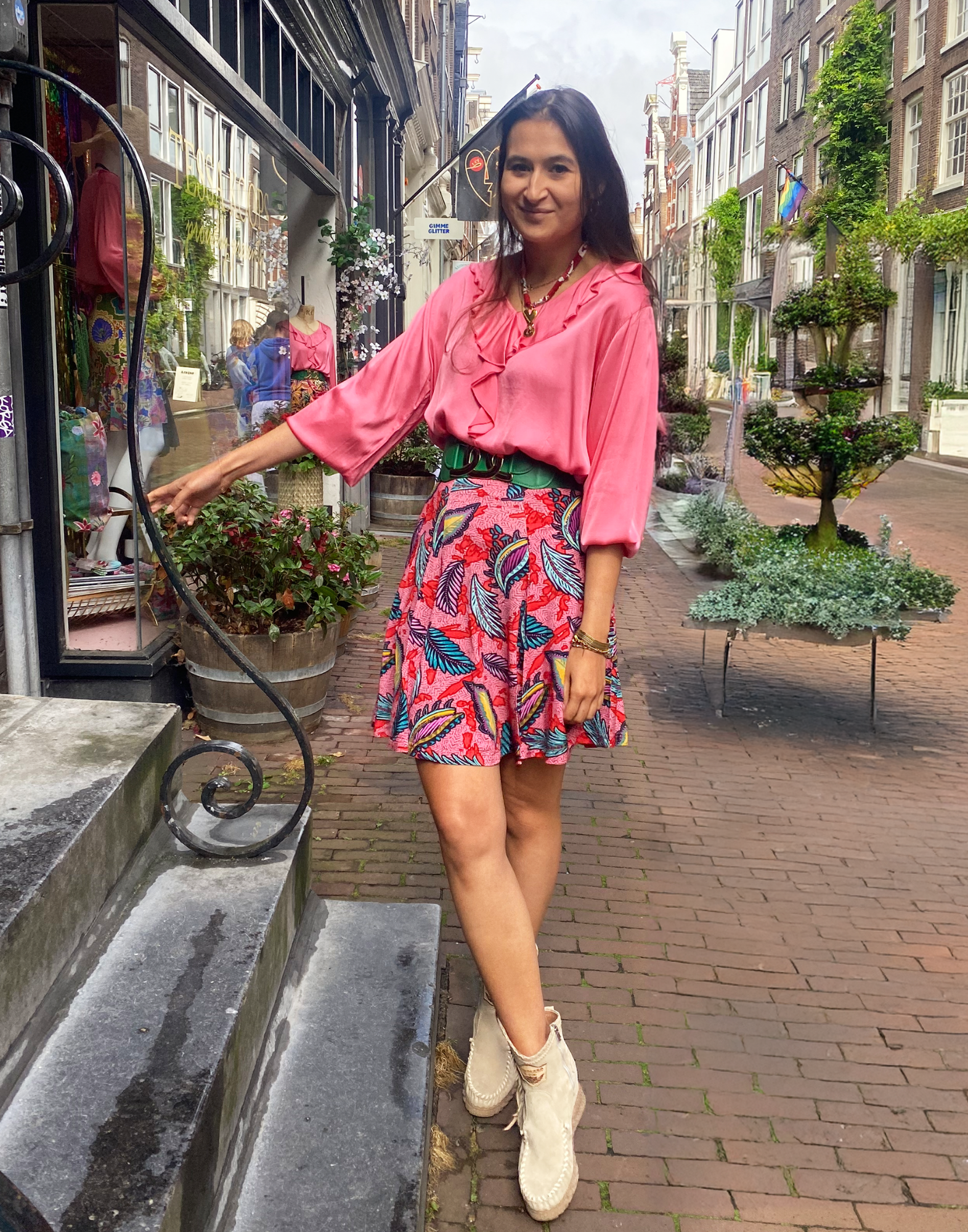 De Salina Satin Oliander Top heeft een V-hals afgezet met sierlijke ruffles. De top heeft lange mouwen met aan de onderzijde een manchet met een elastische band als opvallend detail. De Satin feel & look geeft de top een vrouwelijke uitstraling. Lees meer