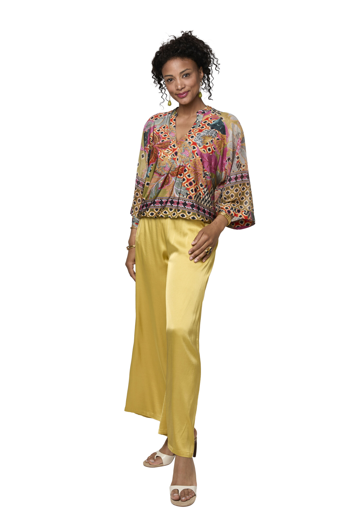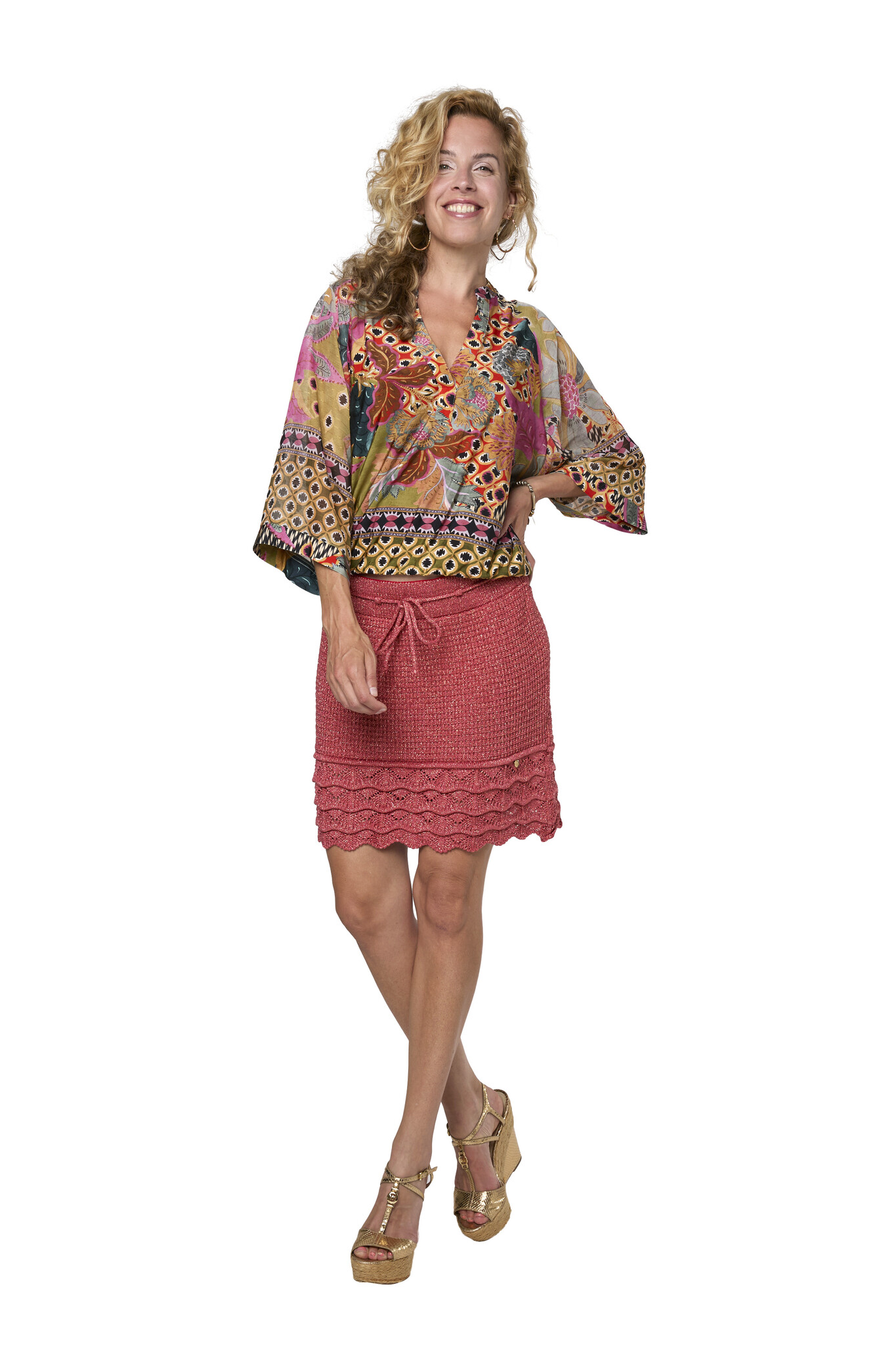 De Sara Primavera Top is een ode aan het voorjaar fris, vrouwelijk en vol verfijnde details. De subtiele glans en het verfijnde dessin geven de top een luxe uitstraling, terwijl de vrouwelijke snit zorgt voor een flatterend silhouet. De halslijn is elegant afgewerkt en de mouwen vallen luchtig langs de armen, wat zorgt voor een comfortabele én stijlvolle look.