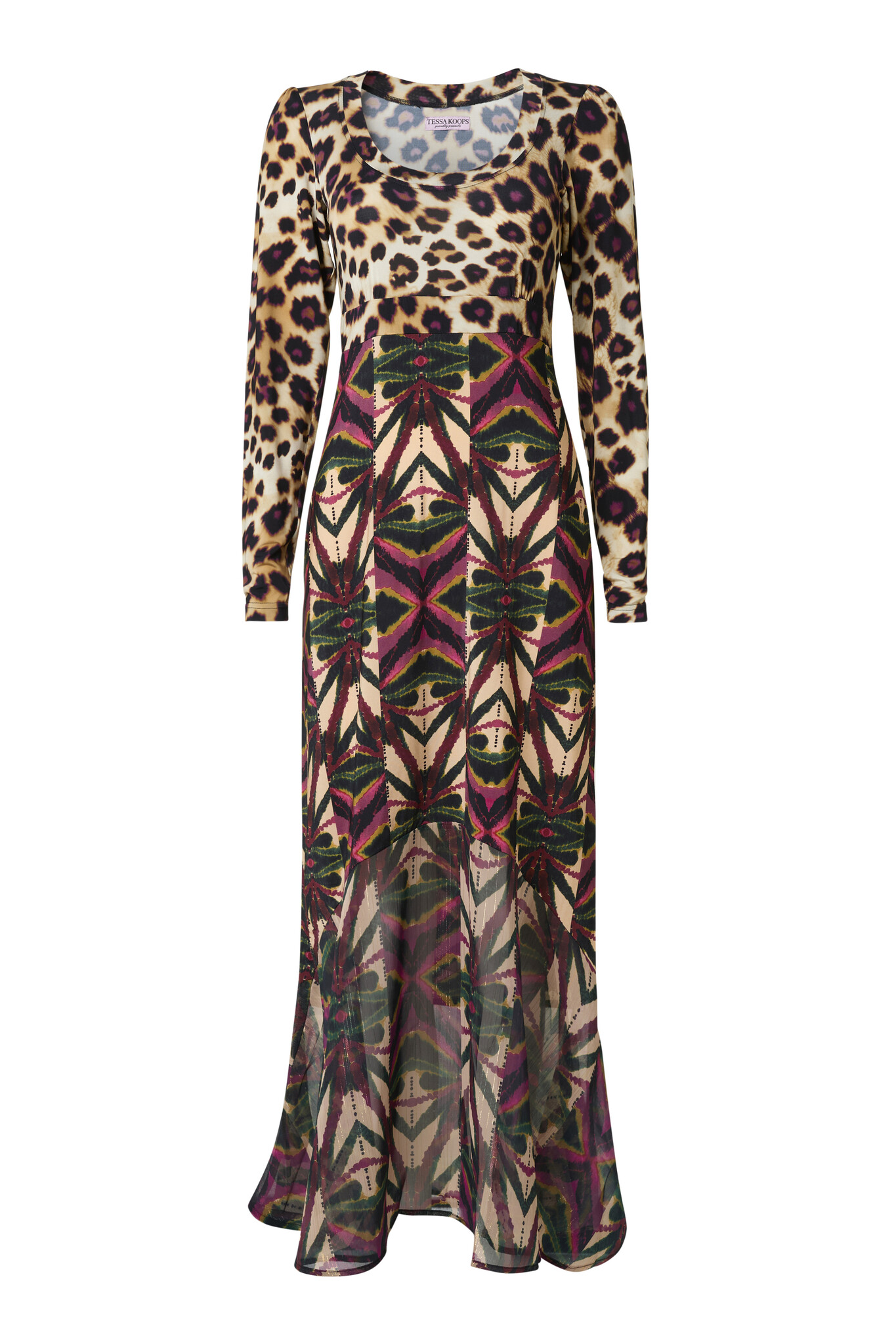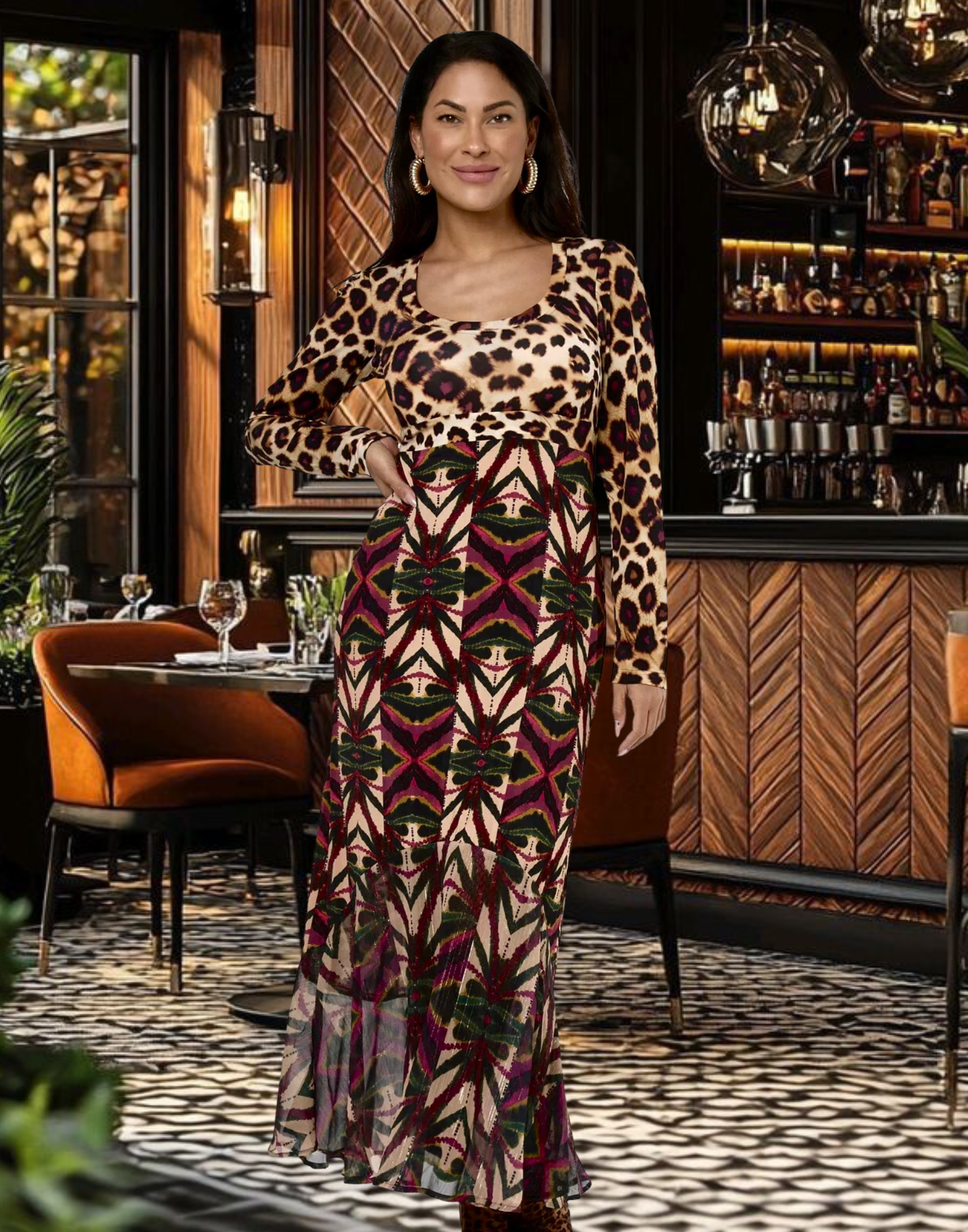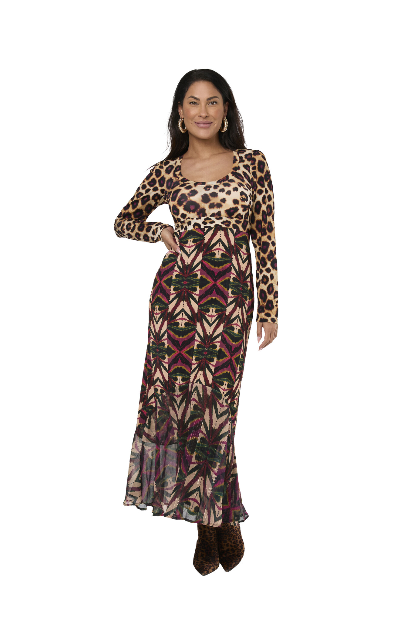 Deze Victoria Catania Jurk heeft een elegante ronde hals en lange mouwen, perfect voor elk seizoen. De bovenkant is voorzien van een subtiele verfijnde print, terwijl de onderkant opvalt door een levendig en contrasterend patroon. Door de hoge taille krijgt het figuur een slankere uitstraling. De mooie ronde decolleté geeft een vrouwelijke uitstraling.