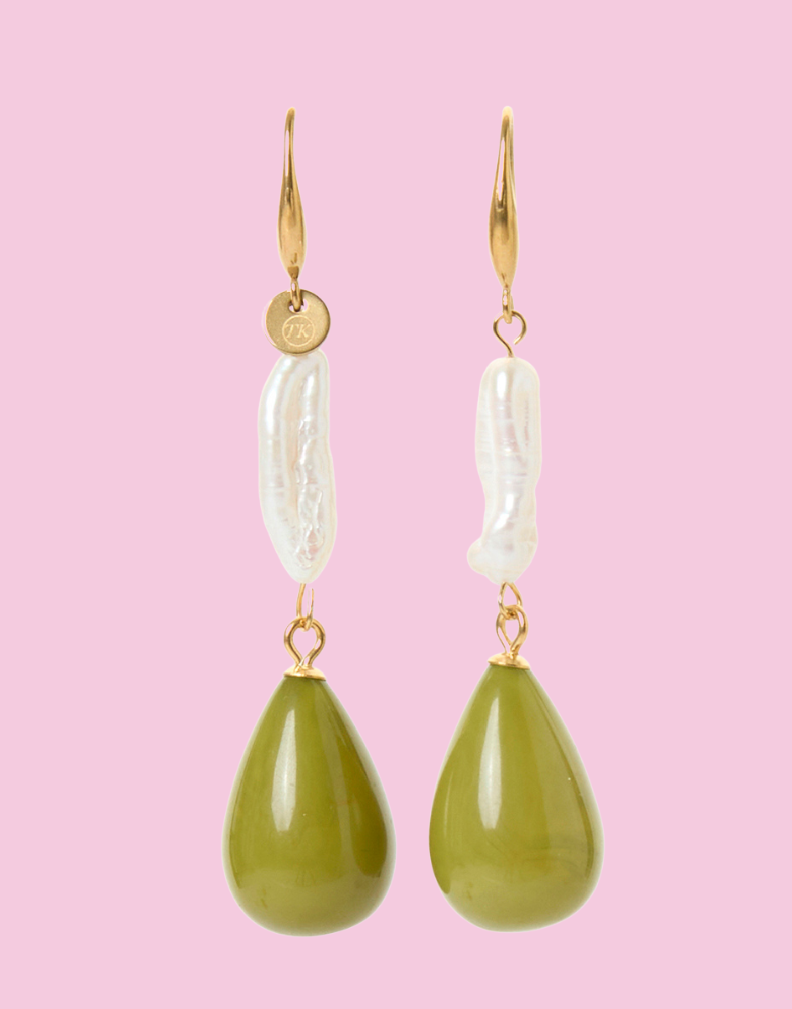 Breng kleur én elegantie samen met de Wild Pearl Green Oorbellen van
