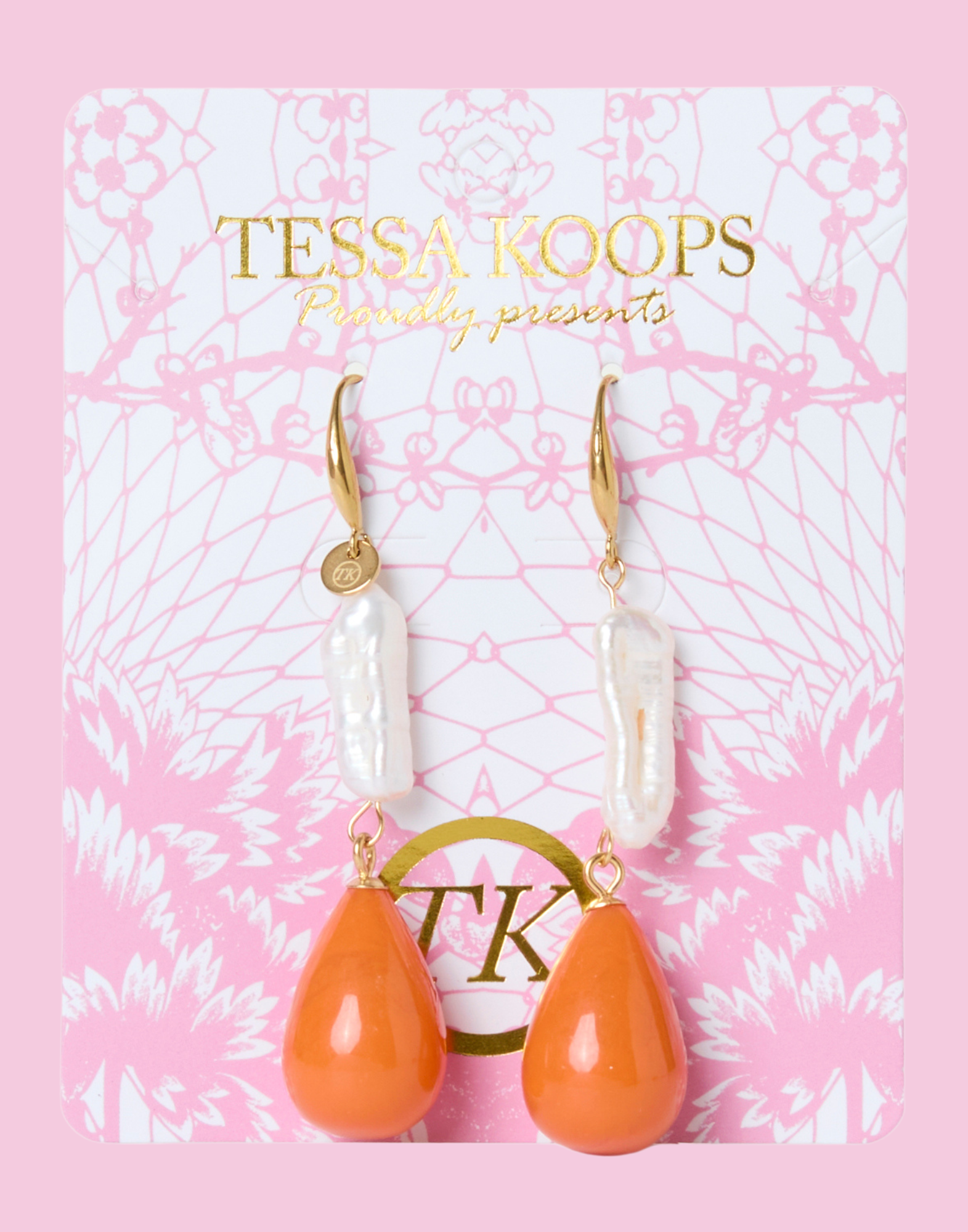 Deze Wild Pearl Orange Oorbellen zijn ontworpen met een stijlvolle lange parelkraal aan de bovenzijde en een speelse, gekleurde ovale druppel kraal aan de onderzijde voor een levendige touch. Dit model zijn ook in het Groen & Rood verkrijgbaar Lees meer
